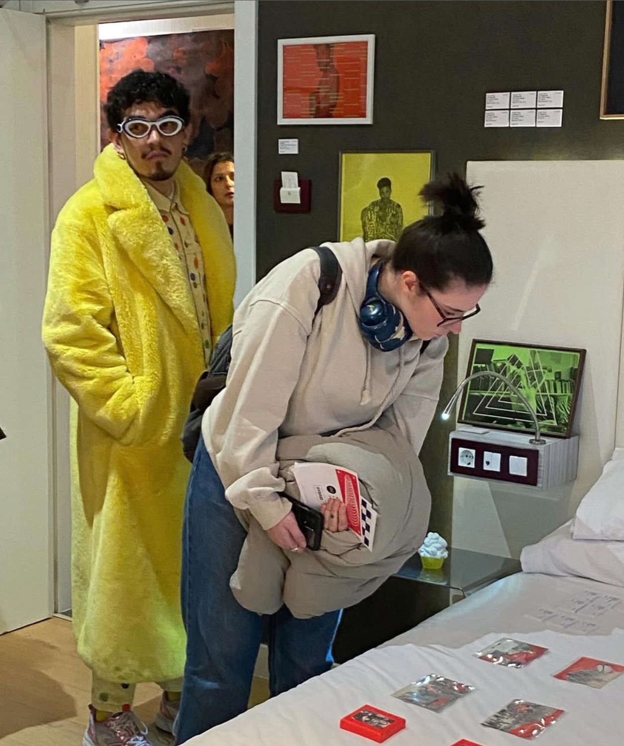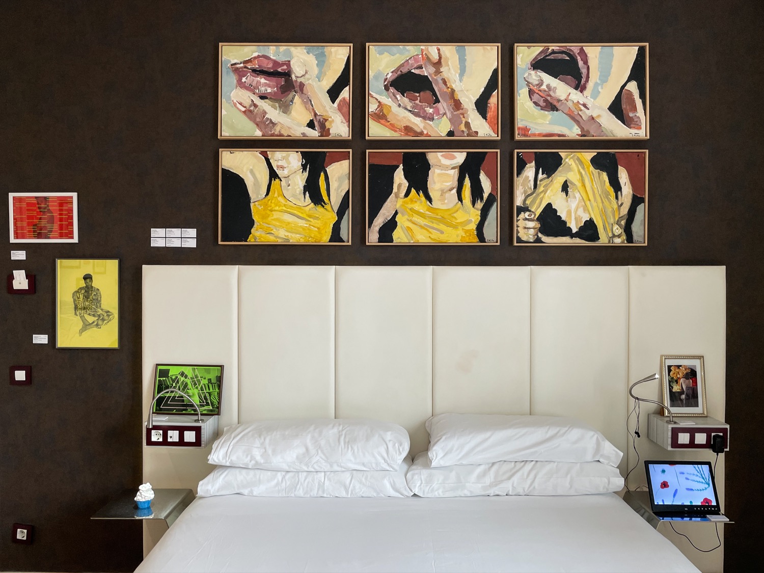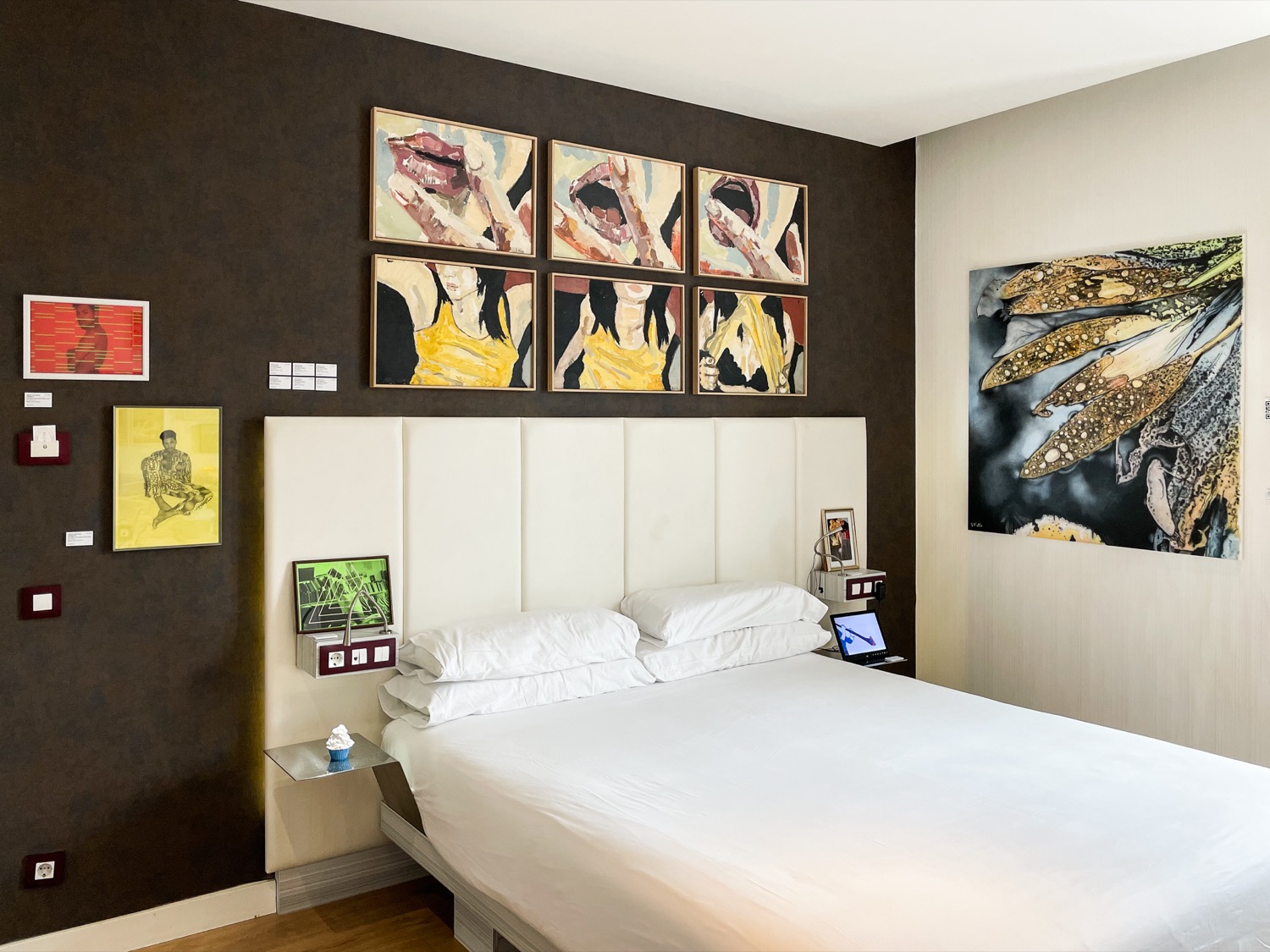 The proposal not only plays on the relationships between the works presented, but also articulates itself with the unusual exhibition space that is a hotel room, escaping the classic 'white cube' and bringing us closer to the experience that can be had in a home or in the spaces we regularly use and inhabit.
