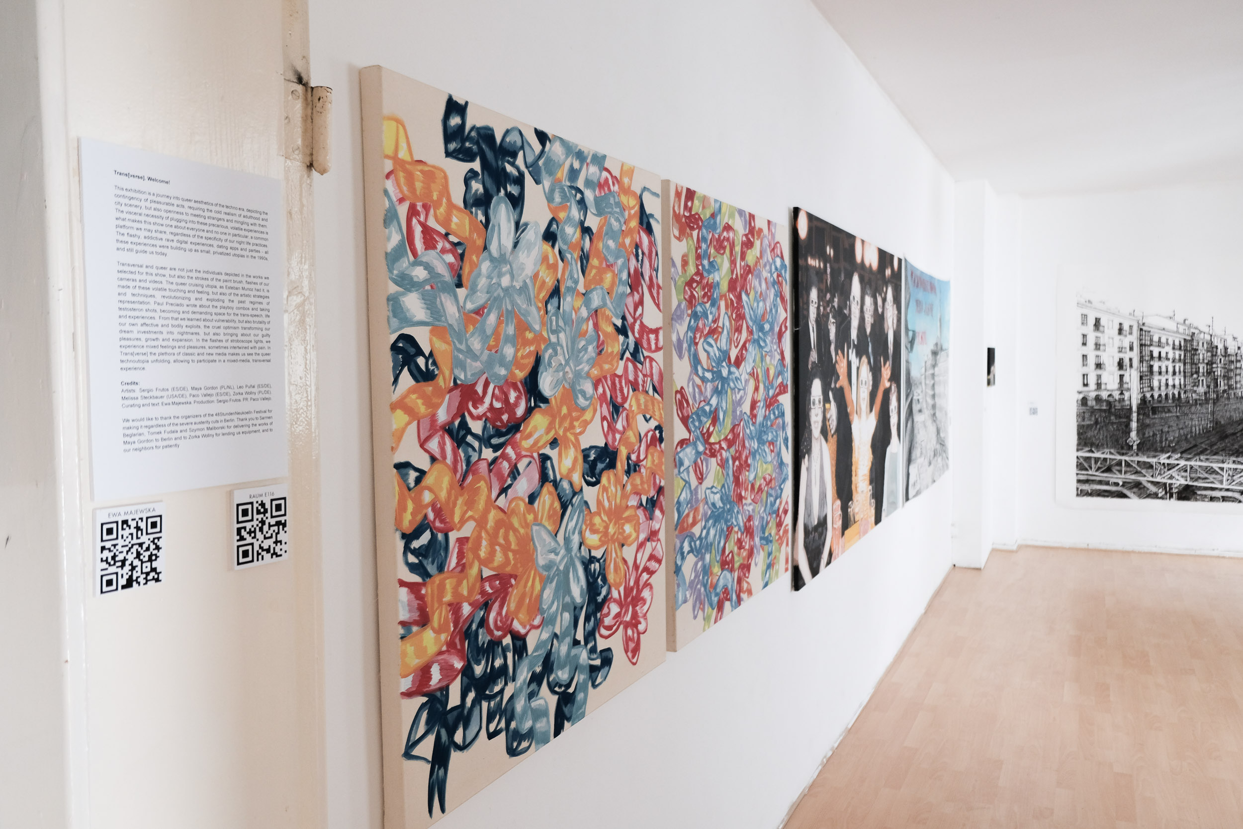 Transversal and queer are not just the individuals depicted in the works we selected for this show, but also the strokes of the paint brush, flashes of our cameras and videos. The queer cruising utopia, as Esteban Muñoz had it, is made of these volatile touching and feeling, but also of the artistic strategies and techniques, revolutionizing and exploding the past regimes of representation. Paul Preciado wrote about the playboy combos and taking testosteron shots, becoming and demanding space for the trans-speech, life and experiences. From that we learned about vulnerability, but also brutality of our own affective and bodily exploits, the cruel optimism transforming our dream investments into nightmares, but also bringing about the guilty pleasures, growth and expansion. In the flashes of stroboscope lights, we experience mixed feelings and pleasures, sometimes intertwined with pain. In Trans[verse] the plethora of classic and new media makes us see the queer technoutopia unfolding, allowing to participate in a mixed media, transversal experience.
